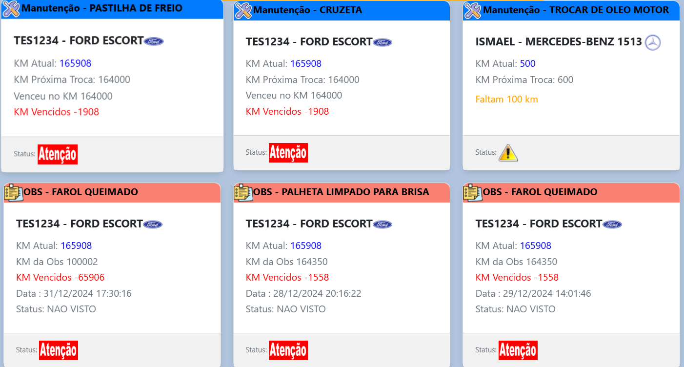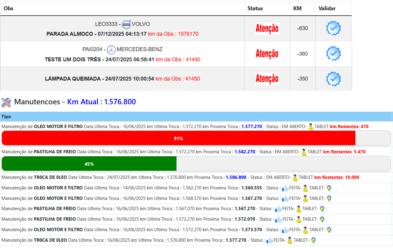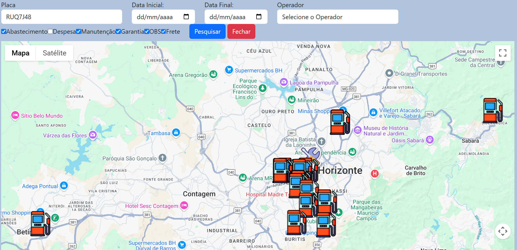 Acompanhe pelo site todas despesas, abastecimentos, garantias, fretes, horímetros, ocorrências e manutenções.
